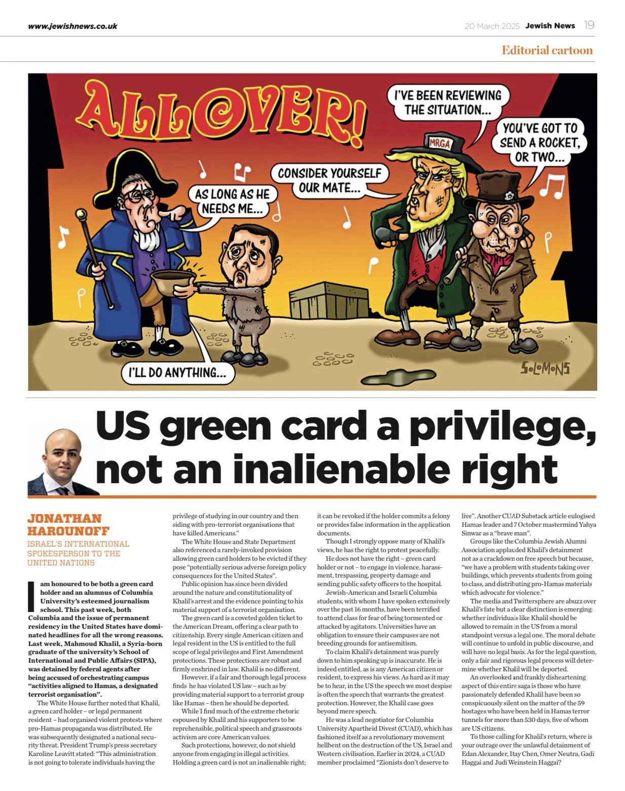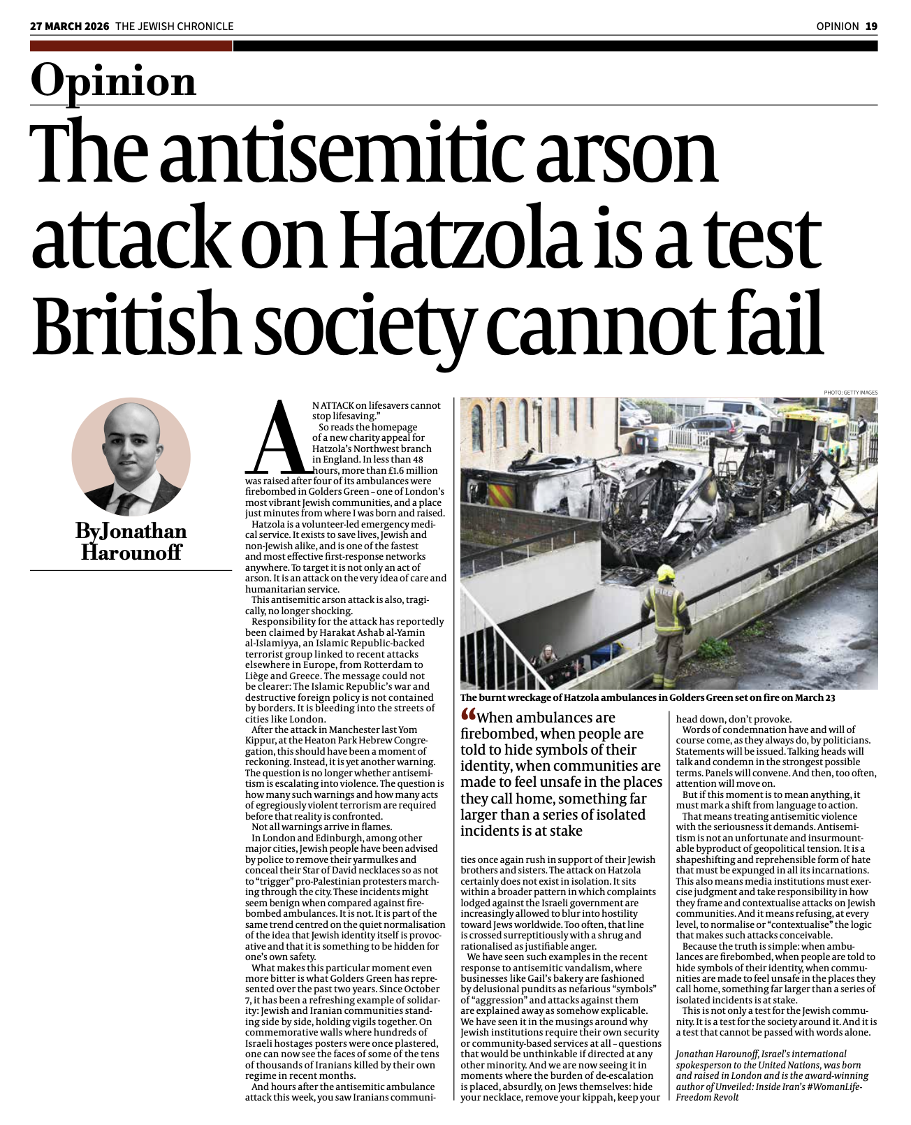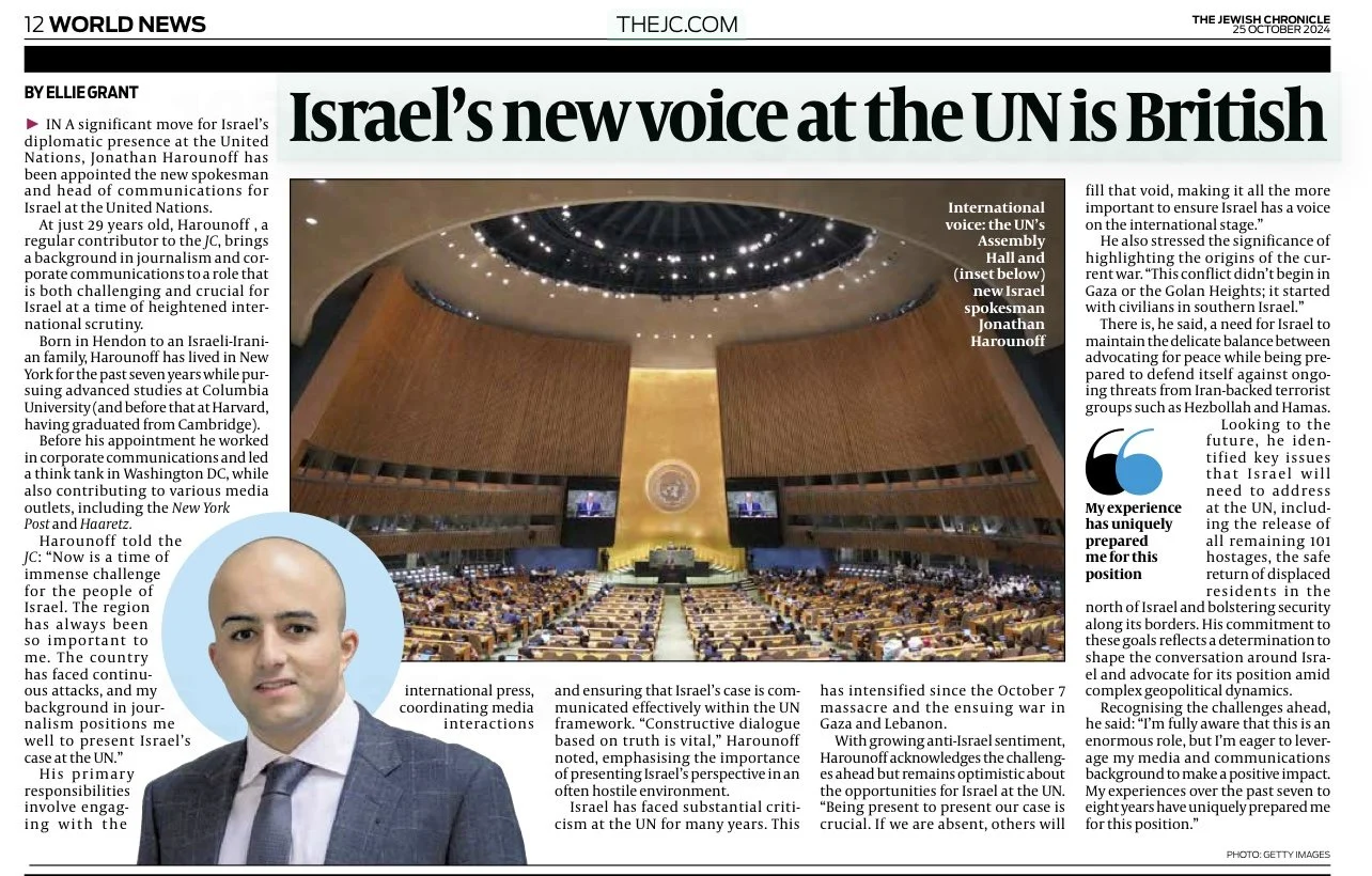 Jonathan is a British journalist based in New York currently serving as Israel’s international spokesperson to the United Nations. He is the author of Unveiled: Inside Iran’s #WomanLifeFreedom Revolt, out in September 2025.